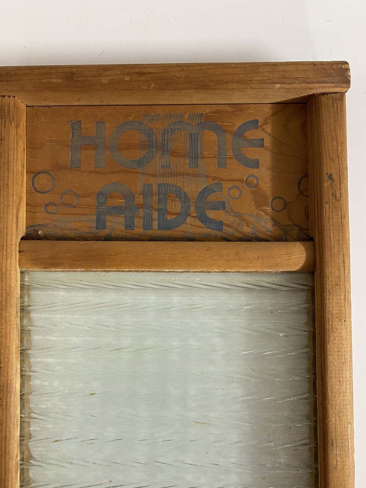 Vintage Wooden Wash Board Glass Insert Home Aide Columbus Washboard Co Ebay